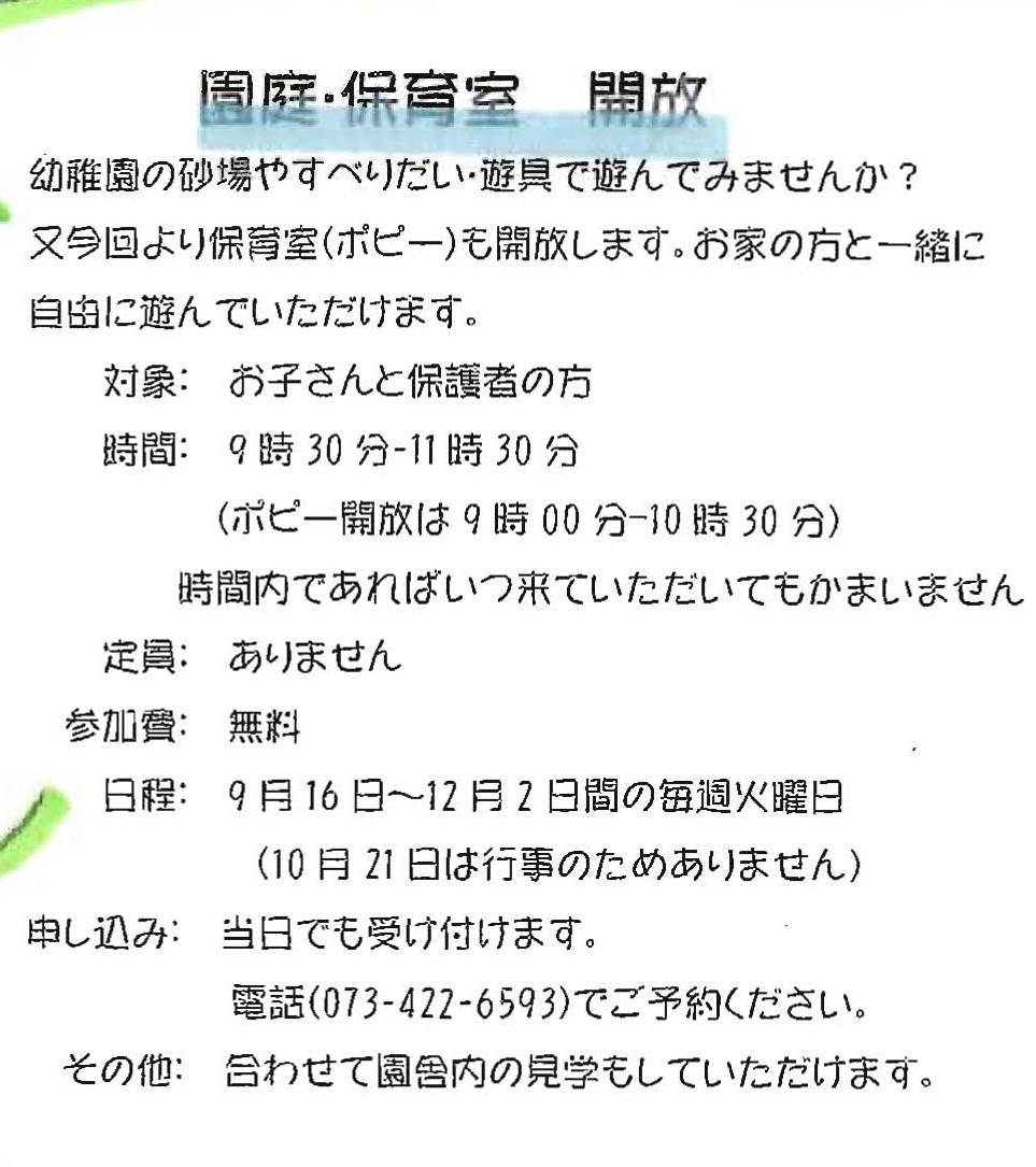 まだまだ暑い毎日ですが、きらきら・園庭保育室開放も始めます!